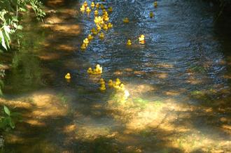Dank großer Rechen und einem Aufpasser für wenige Enten-Ausreiser ging keines der gelben Quietscheentchen verloren