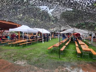 Also wir haben schon viel erlebt, aber so ein Sommerfest hatten wir noch nie. Alle die da waren, werden es nicht vergessen. Immer zwischen Hoffen und Bangen, was das Wetter anbetrifft, aber es kam schlimmer? Nichtsdestotrotz gab es aber auch Moosifans, die am Sonntagmorgen gekommen sind und erst abends wieder nach Hause sind, ich kann nur sagen Respekt. Samstag hatten wir bei der Eröffnung die Spätzünder mit einer Stunde Unterhaltungsmusik die gut ankam, anschließend dann unsere Musikfreunde aus Lemberg, die sich ganz schön ins Zeug gelegt haben und schöne Stimmung spielten. Zum Schluss dann der Top Act mit Calm and Exciting. Wahnsinn was die Jungs gespielt und performt haben. Im Vergleich zum letzten Jahr hatten sie noch ein paar Schippen draufgelegt. Sehr, sehr gut. Vor der Bühne wurde sogar im Matsch getanzt? Der Sonntag stand dann im Zeichen der Wasserschlacht. Gestartet wurde mit dem Musikverein Bann, gefolgt von dem Kirchenchor und dem Männergesangverein Frohsinn aus Hermersberg. Die Sänger sind zahlreich erschienen und haben Stimmung gemacht. Anschließend spielte die Kolping Kapelle aus Kindsbach schöne Unterhaltungsmusik genauso wie die Musikfreunde aus Weselberg und die Stadtkapelle aus Pirmasens alle natürlich bei mehr oder weniger Regen. Unter den Zelten und Carports hatten sich viele Fans eingefunden die frenetisch applaudierten und die trotz dem Wetter die Moosalbtaler kräftig unterstützten mit Essen und Trinken. Alle Mitwirkenden hatten viel Spaß und haben sich richtig ins Zeug gelegt. Alle Helfer waren sehr engagiert, vom Aufbau über das Helfen beim Fest und dann zum Schluss auch noch der Abbau. Vielen, vielen Dank nochmal dafür.