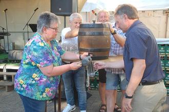 Den Fassbieranstich erledigte in diesem Jahr Sabine Käfer im Kreis der örtlichen Vereinsvertreter