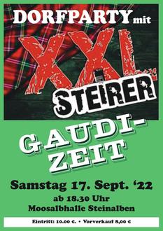 „Festzeltstimmung - bis die Bude kracht!“ in der Moosalbhalle & Dorfgemeinschaftshaus mit „Gaudi Zeit“ aus der Schweiz und der Partyband XXL Steier