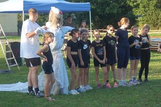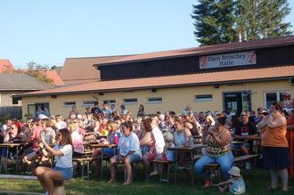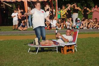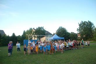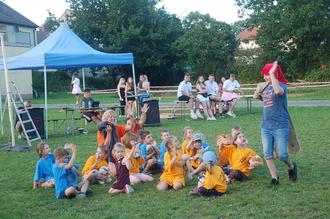 Am Freitagvormittag stand eine spannende Waldrallye für alle auf dem Programm. Der Höhepunkt der Kinderferienfreizeit war natürlich auch in diesem Jahr wieder der große Abschlussabend zu dem die Eltern und Großeltern wieder zahlreich auf dem Jahnplatz vor der Hans Broschey-Halle mit Freude teilgenommen haben. Hier hatte man sich unter dem Motto „Äneder Trash TV, oder Dieters Feierowend“ die Live-Darstellung eines Fernsehfeierabends vor der Glotze einfallen lassen. Dargestellt wurden unter anderem von den einzelnen Kindergruppen die Sendung mit der Maus, das Dschungelcamp, das Supertalent, Germanys Next „Dorf“-Model und zum Abschluss das Sandmännchen. Auch von einigen Betreuern wurden lustige Einlagen präsentiert, sodass das rund zweistündige Abschlussprogramm (anders als im realen TV) nie langweilig wurde. Die Wetterunbilden und der Starkregen am Dienstag und Mittwoch während der Freizeit wurden von Petrus übrigens zeitlich so gelegt, dass es das viertägige Programm nicht beeinträchtigte ….was wollte man mehr? Die Rundum-Verpflegung für die doch stattliche Personenanzahl wurde in diesem Jahr von vier Personen in der Küche gestemmt, denen an dieser Stelle ebenso wie allen Helferinnen und Helfern an vorderster Front, wie auch unsichtbar hinter den Kulissen ein dickes Dankeschön ausgesprochen werden soll. Ohne eine solche Mannschaft, wie sie beim TVH vorhanden und die mit Leidenschaft und Freude dabei ist, wäre ein solcher Freizeit-Kraftakt nämlich nicht denkbar!