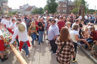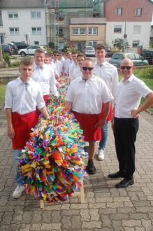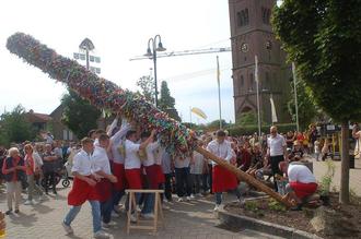 Im Anschluss wurde der Strauß vor das gegenüberliegende Rathaus getragen und dort unter größter Kraftanstrengung aufgestellt. Immerhin hatte man schon zwei anstrengende (Feier)Tage mit sicherlich viel Gerstensaft hinter sich und übrigens bis Dienstag auch noch weitere zwei Tage vor sich.