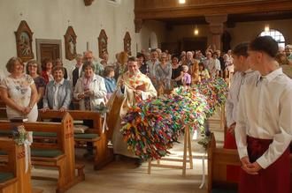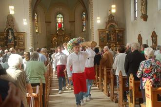 Auch in Hermersberg kann man noch immer eine zünftige Kerwe feiern. Die „Straußbuwe“ hatten einen bunten Kerwestrauß angefertigt und brachten diesen am späten Sonntagvormittag nach dem Gottesdienst in die Kirche um ihn segnen zu lassen. Auch die vielen „Straußbuwe“ selbst wurden „mit extra viel Weihwasser“ gesegnet und ein „Wem is die Kerb….“ klang in der Kirche dann doch noch einmal ganz anders …und ein kräftiger Applaus im Gotteshaus ist eher auch selten.