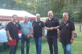 Die drei Vereinsvorstände mit den Bürgermeistern: v.links: Erwin Herzinger jr., Michael Oestreicher, Torsten Cieslik, Felix Leidecker, Paul Nissle
