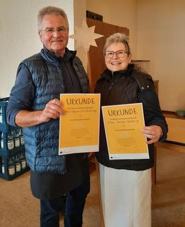 Heinrich und Sonja Jaberg erhielten eine Urkunde als Dankeschön und Erinnerung für ihre Unterstütrung