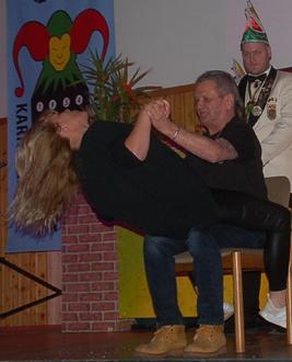 Wohl einmalig: Ortsbürgermeister Michael Oestreicher mit Ehefrau Tanja bei ihrer mit Akrobatik gespickten Burlesque-Show