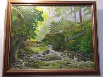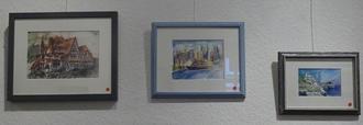 Von Anfang an zählt Ilse Scheid zum Team der Hobbymaler, die diesmal mit 4 Bildern in Aquarell- und Pastell-Technik vertreten ist. Ihre Motive sucht sie vorwiegend im lokalen landschaftlichen Bereich aus, stets in exzellenter Umsetzung auf Papier oder Leinwand gebannt. Diesmal hat sie auch eine nordische Landschaft mitgebracht.Ganz der Abbildung heimischer Region in Öl-Technik widmet sich hingegen Ehemann Karl Scheid, der hier 5 Landschaften mit lokalem Bezug ausstellte. Er ist dieser Malergruppe erst etwas später beigetreten. Gleiches gilt für Ursula Jekel, die hier mit 6 Landschaftsbildern in Aquarell-Technik die Wände zierte.