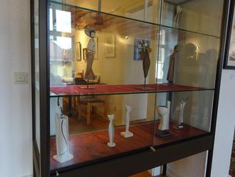 Nach einer eigenen Bilderschau im Jahre 2006 ist Heidi Decker erst in diese Malerrunde eingerückt. Damals begonnen mit der Technik nach Bob Ross hat sich in der Zwischenzeit bei ihr eine merkliche Entwicklung vollzogen. Hierher brachte sie 4 Acryl-Bilder ohne gegenständliches Erkennungsmal mit. Diese abstrakte Malerei bezeichnet sie selbst als experimentelle Exponate. Erst vor einigen Jahren ist die in Burgalben beheimatete Keramikerin Renate Faust zu der Gruppe gestoßen. Ihre teils sehr kreativen 15 Klein-Plastiken bedeuten sicherlich eine Bereicherung zu langjähriger Malerei. Mit Michaela und Tochter Carina Würtz ist der Kreis örtlicher Kunstschaftender abgeschlossen. Während Carina ausschließlich kleinteilige figürliche Töpfer-Ware ausstellte, ist ihre Mutter neben 4 kleinen Keramik-Figuren auch noch mit 6 Tier-Bildern in Aquarell-Technik vertreten.