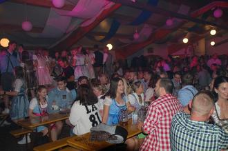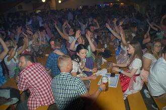 Das Hermersberger Oktoberfest ist mittlerweile ein Selbstläufer, denn die Eintrittskarten waren auch in diesem Jahr wieder in kürzester Frist und ohne große Werbung im Vorfeld schnell wieder ausverkauft. Bereits im 2. Jahr in Folge hat man auch auf der Bühne nicht gekleckert und mit „Krachleder“ eine große und bekannte Band aus der Pfalz verpflichten können, die es versteht ab den ersten Sekunden, gewissermaßen von Null auf Hundert den Stimmungsschalter umzulegen. So war es nicht verwunderlich, dass bereits zum Start nicht nur die „Hände zum Himmel“, sondern auch die ersten Feierwütigen mit dem Maßkrug bewaffnet auf die Bänke stiegen.