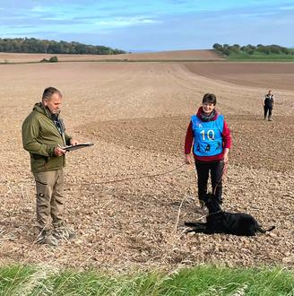 Teilnehmen durften anschließend maximal 24 Hunde. Am 29. September ging es dann los mit dem Veterinär-Check, der Chipkontrolle der Hunde, sowie der Auslosung der Startnummern am Abend. Samstag, pünktlich um neun Uhr, war Abfahrt ins Fährtengelände. Frau Christmann, mit der Startnummer 1, musste die Fährtenarbeit beginnen. Abgesucht wurde eine IFH2 Fährte von mindestens 1800 Schritt nach einer Liegezeit von 3 Stunden, wobei von den Hunden sieben Gegenstände angezeigt werden mussten.