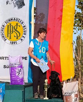Am ersten Oktoberwochenende startete unser Vereinsmitglied Karina Christmann mit ihrer Riesenschnauzerhündin Lilli vom Wasserschloss auf der Deutschen Meisterschaft der Fährtenhunde im thüringischen Großwechsungen.Jeder Teilnehmer musste sich über seine Landesgruppenausscheidung qualifizieren.