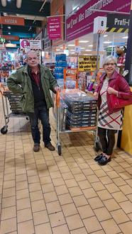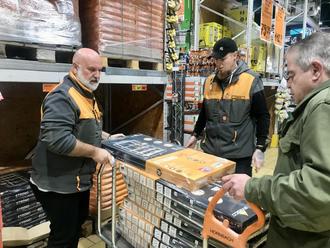Das Service-Team Coßmann und Ecker der Fa. Hornbach haben zusammen mit Ausschussvertreter Dietmar Traxel einen Wagen mit Material beladen