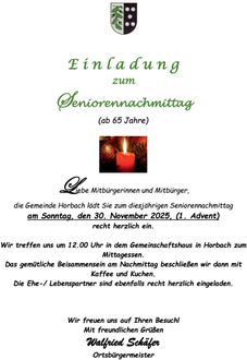 die Gemeinde Horbach lädt Sie zum diesjährigen Seniorennachmittag