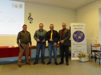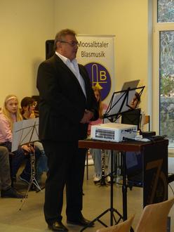 Nach der Begrüßung durch den Vereinsvorsitzenden Winfried Krämer wurde vom Steinalber Ortsbürgermeister Klaus Reischmann, stellvertretend für alle Bürgermeister der Verbandsgemeinde, eine Laudatio auf die 70 Jahre der Moosalbtaler Blasmusik gehalten.