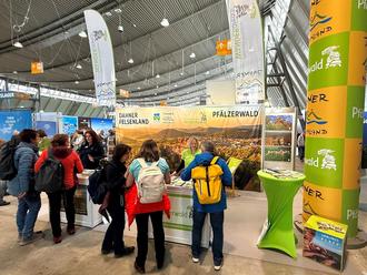 Das gesamte Team des Messestandes freute sich über regen Zuspruch und viele interessante Gespräche. „Insbesondere die detaillierte Vorstellung unserer zahlreichen attraktiven Premiumwanderwege, grenzüberschreitenden Radangeboten, faszinierenden Felsen und Burgen und gemütlichen Unterkünfte begeisterte die Messebesucher. Die einmalige Kombination aus Naturerlebnis und kultureller Vielfalt konnte erfolgreich vermittelt werden, was sich in zahlreichen neuen Kontakten und potenziellen Besuchern niederschlug“, so Michaela Herbort, Geschäftsführerin Pfälzerwald Tourismus und Anette Lang, Leiterin der Tourist-Information Dahner Felsenland.