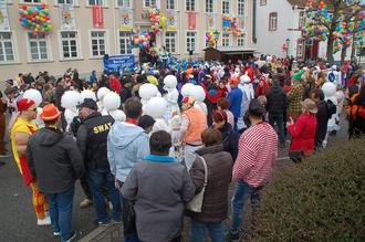 Der OB (in diesem Fall heißt das Ortsboimäschder) wird das Ganze dann hochoffiziell und pünktlich um 13:11 Uhr eröffnen. 13:33 Uhr ist dann die Zeit der Riesen-Polonaise um den Kreisel. Gleichzeitig wird es lautstark mit gleich den Musik-Gruppen: „Es komme nämlich Gugge-Gruppe - Roigeischder und Gugge-Glucke“!