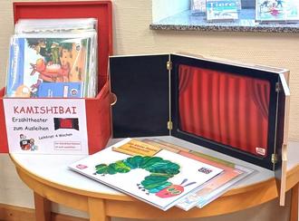 Die Zentralbücherei hat ein neues Medienangebot. Kamishibai - so heißt ein japanisches Tisch-Erzähltheater. Das Erzähltheater besteht aus einem Holzrahmen, der auf den Tisch gestellt und mit Bildkarten im A3 Format bestückt wird. Dazu kann eine Geschichte erzählt oder vorgelesen werden. Die Zentralbücherei hält das Theater sowie rund 30 Bildkartensets mit unterschiedlichen Geschichten für Kinder vom Kleinkind- bis zum Grundschulalter vor, darunter bekannte Bilderbücher wie „Die kleine Raupe Nimmersatt“ oder „Für Hund und Katz ist auch noch Platz“, aber auch Märchen und Sachgeschichten. Der Kamishibai-Rahmen und die Bildkarten können 4 Wochen ausgeliehen werden.