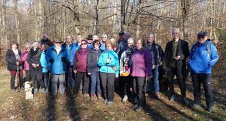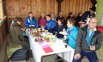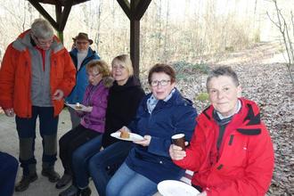 Die Halbtagestour des HVH am 12. Februar war wieder einmal gut besucht. Wanderführer Raimund Seewald konnte sich jedenfalls über rege Teilnahme freuen. 27 Wanderer folgten ihm vom Parkplatz am Friedhof zur „Bushaltestelle“ auf dem Dinkelsberg. Nach einer kurzen Rast ging es dann in einem weiten Bogen zum „Café Rondell“ am Kreuzstein. Googeln zwecklos, ist auf keiner Karte zu finden. Margit Schleiner hatte nämlich den Unterstand kurzerhand in ein Café verwandelt und verwöhnte die staunende Schar mit leckerem Kuchen und Kaffee. So gestärkt wurden die letzten Meter dieser 8 km langen Rundtour zum Kuckucksnest locker heruntergelaufen.