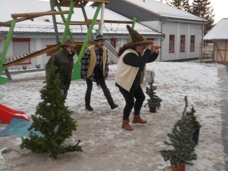 Am 19.12. war es dann so weit und wir konnten unser Märchen aufführen. Zum Glück war uns der Wettergott hold und wir konnten unsere Kulissen auf unserer großen Terrasse aufbauen. Die Kinder saßen erwartungsfroh und warm eingepackt auf ihren Bänken und auch die Schauspieler waren nicht weniger aufgeregt. Dann ging es los und die Kinder ließen sich schnell in die Märchenwelt entführen, selbst die Kleinsten verfolgten gebannt das Geschehen. Als die Geschichte der 4 Stadtmusikanten zu Ende erzählt war, bedankten sich die Kinder und die Gäste mit einem tollen Applaus. Auch von Seiten des Kindergartens möchten wir uns noch einmal recht herzlich für die vielen Mühen der Akteure bedanken und hoffen auf eine Wiederholung in der nächsten Vorweihnachtszeit!