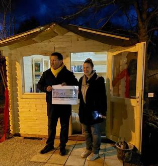 Anlässlich der Einweihung des Bücherhauses „Buchbar“ und der Titelverleihung „Verein des Jahres“ konnte ich am 29.12.2023 Glückwünsche und eine Zuwendung in Höhe von 300,00 € überbringen, um damit das nächste Projekt des Vereins zu unterstützen. In dem Häuschen stehen verschiedene Bücher, die durch interessierte Bürger ausgeliehen werden können, man kann aber auch die Regale mit gutlesbaren Büchern bestücken. Der Name „Buchbar“ ist im Rahmen eines Ideenwettbewerbs entstanden.
