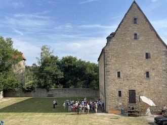 Rund um das Rathaus war erneut der Zinsboden mit der historischen Fotoausstellung zur Stadtmauergeschichte begehbar. In der Steinofen-Luftheizung konnte man Einblick in die Anlage nehmen und interessante Grabungsfund bestaunen. Stadtführungen rund um die Stadtmauer wurden von Frau Gudrun Baer um 11 und 13 Uhr angeboten und fanden mit über 50 Personen sehr guten Zuspruch. Eine weitere Führung für die kleinen Besucher fand um 14 Uhr statt. Danach konnten sich die insgesamt 14 Teilnehmer „Stadt(-ilm) Entdecker“ nennen und bekamen dafür von Frau Wilhelms und Frau Kümmerling eine Urkunde überreicht.