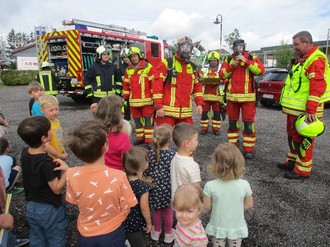 Die Kinder beobachteten gebannt das Geschehen vom Sammelplatz aus und löcherten später die Feuerwehrmänner mit Fragen.