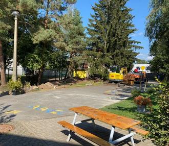 Es geht nicht nur im pädagogischen Kontext weiter, sondern auch bei der Erneuerung der Einrichtung. Diverse Baustellen zur Modernisierung wurden eröffnet. Der Sanitärbereich im Erdgeschoss wird zurzeit renoviert. Im vorderen Außenbereich wurde der Zaun zum Nachbargelände des Jugendclubs erneuert und Grundelemente für unser geplantes Carport werden geschaffen.