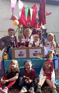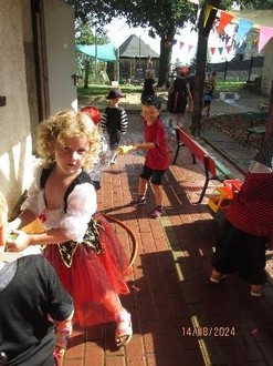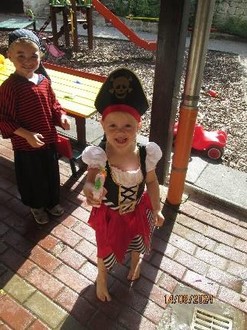 Das superwarme Sommerwetter war der Anlass für ein spontanes Piratenfest. Überall im Kindergarten sah man schon, hier haben die Piraten das Sagen. Fahnen wehten und Wimpel flatterten im lauen Sommerwind. Da Piraten ja bekanntlich gut und gerne feiern, begann der Tag mit einem ordentlichen Piratenfrühstück.