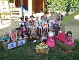 Und mit was kämpfen Piraten bei großer Hitze? Natürlich mit Wasserpistolen, damit wurde für allerlei Erfrischung gesorgt. Nicht nur die Kinder auch alle Erzieherinnen bekamen eine Dusche ab. Jeder Pirat und jede Piratin bekamen zum Schluss noch einen Orden. Für alle stand fest, das war ein toller Tag und so ließ sich die Hitze gut ertragen.