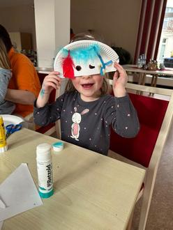 Außerdem stellen wir uns allmählich auf den Stadtilmer Faschingsumzug und unsere Faschingsfeiertage im Kindergarten ein. In diesem Zusammenhang besuchten einige Kinder wieder die Senior/innen vom AWO Seniorenwohn- und Pflegezentrum „Am Finkenhügel“. Gemeinsam wurden Girlanden, Masken und Hüte für Fasching gebastelt. Zwischen „klein“ und „groß“ fand eine tolle Arbeitseinteilung statt. Die Senior/innen schnitten die Muster aus und die Kinder beklebten diese mit bunten Federn und Luftschlangen. Es wurde sich kreativ ausgelebt und als Erinnerung an diesen Tag, dekorieren jetzt bunte Masken die Wände im Seniorenheim.