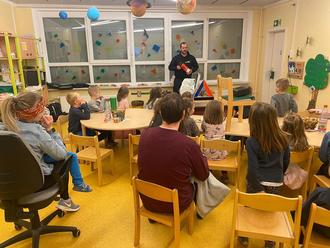 Des Weiteren organisierten die pädagogischen Fachkräfte des Schulanfängerbereiches einen Vormittag zum Thema Brandschutz- und Sicherheitserziehung. Der Brandschutzerzieher Stefan Mund besuchte die Kinder und informierte über das richtige Verhalten während eines Feueralarms. Auch wurde die Telefonnummer der Feuerwehr ins Visier genommen und besprochen, wann und wie ein Notruf abzusetzen ist. An dieser Stelle einen herzlichen Dank an Herrn Mund für das tolle Engagement. Zum Abschluss übten die Kinder den Rettungsweg über die Feuertreppe.