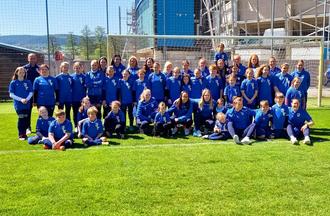 Neben den Gastmannschaften, stellten wir sechs Teams für das Turnier, welches in den Altersklassen F- bis D-Junioren*innen gemischt gespielt wurde. Nach der Mittagspause erwartete uns dann ein weiteres Highlight – wir trafen die Frauenmannschaft des FCC, die sich Zeit für die Kinder nahmen und Autogramme auf den eigenen Campshirts verteilten. Auch der Chef-Trainer Christian Kucharz begleitete seine Mannschaft. Das gemeinsame Gruppenbild rundete das Treffen ab.