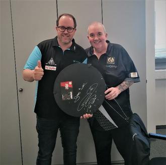 Der zum Turnier anwesende Sportmanager Daniel Ilic aus Hannover war von der Aktion so begeistert, dass er uns prompt seine Unterstützung anbot. Er lud uns am 21. April 2023, zum Tag der Weltmeister nach Hannover ein. Hier trafen wir die Dartslegende und 16-fachen Weltmeister Phil Taylor sowie den 3-fachen Weltmeister Glen Durrant.