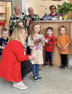 Die Mädchen und Jungen im Alter von drei und vier Jahren sangen und tanzten für die Geburtstagskinder und deren Gäste. Zum Abschluss gab es viel Applaus, Geschenke, Kuchen und Saft.