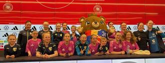 Der Tag wurde damit abgerundet, dass es für die Mädchen noch eine Pressekonferenz gab. Jeweils eine Spielerin pro Mannschaft stand Rede und Antwort und alle durften den Cheftrainer mit Fragen löchern. Mit dabei war auch das Maskottchen „Albärt” der EURO 2024, der nicht müde wurde, Autogramme zu verteilen.