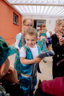 Unter dem fröhlichen Motto „Zirkusluft liegt in der Luft“ verwandelte sich der Kindergarten „Friedrich Fröbel“ an einem Freitag im schönen Monat Mai in eine bunte Zirkuswelt voller Lachen, Musik und Überraschungen. Das alljährliche Familienfest, liebevoll organisiert von Eltern, Kindern und Erzieher*innen, wurde zu einem vollen Erfolg - ein Tag, der sicher allen Besuchern lange in Erinnerung bleiben wird. Bereits beim Betreten des Kindergartens wurden die Gäste von farbenfrohen Wimpeln, Tiermasken und Zirkusmusik empfangen. Die Eintrittskartenkontrolle übernahmen unsere Zirkusdirektoren persönlich. Unsere Kinder schlüpften in Kostüme als Akrobaten, Seiltänzer, Zauberer, Fakire oder Schlangenbeschwörer und zeigten mit Begeisterung, was sie in den letzten Wochen geübt hatten.