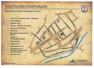 Am 4. Mai feierten wir gemeinsam mit unserer Bevölkerung, Gästen aus nah und fern das 1. Stadtilmer Stadtmauerfest einschließlich Einweihung des Rundwanderweges um die Stadtmauer mit 13 Informationstafeln. Ab 10.00 Uhr begannen an diesem Tag die Vorbereitungsarbeiten auf dem Platz am Zinsboden, um pünktlich 14.00 Uhr das Fest zu eröffnen. Viele fleißige Helfer vom Bauhof, der Stadtverwaltung, der Freiwilligen Feuerwehr, des SCCs, der IG Regionalgeschichte, des Fotoclubs Stadtilm, der Städtebauförderung - Frank Roppel u. Team, des Historikers Dr. Thomas Bienert, Claudia Wilhelms und Nelly Kümmerling am kreativen Stadtgeschichtsstand für klein und groß, der Pilzberaterin Yvonne Gießler-Stumpf, Imkerin Elona Winter, die Osthäuser Bogenschützen, Kreativstände von Katharina Sehl und Monika Spindler, die Schmiede aus Großliebringen, die Waffelbäckerei von Frau Dembeck und der Alleinunterhalter Klaus Müller und die Jagdhornbläsergruppe Herschdorf sorgten für den Erfolg des Festes!