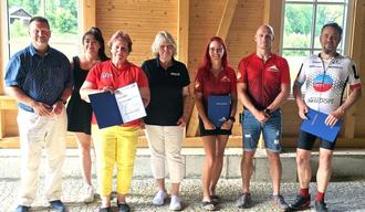 v. l. n. r.: Herr Petermann (Bürgermeister), Team 2-Radhaus/Allianz Hiersche, Team Fit for Fire - Feuerwehr Stadtilm, Team weckhey e.V.