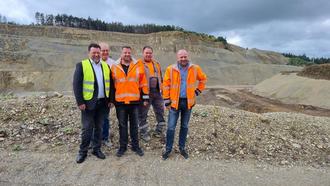 Am 04.08.2023 besuchte ich im Rahmen meiner Sommertour den Steinbruch Großliebringen. Herr Lock und Herr Reinhardt, Geschäftsführer der RT Recycling- und Aufbereitungs-GmbH & Co.KG Thüringen sowie Betriebsleiter Herr Gottschalk gaben mir einen Einblick in die tägliche Arbeit des Steinbruches. Ca. 300.000 Tonnen Naturstein werden jährlich gefördert und zu einer hochwertigen Natursteinkörnung aufbereitet. Diese findet ihren Einsatz im Straßen-, Tief-, Bahn- und Wasserbau. Neben der Förderung und Aufbereitung der Naturmineralien werden auch Baureststoffe in Großliebringen recycelt.
