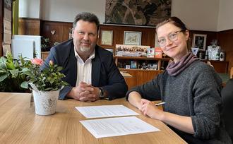 Am 20.06.2024 hat Frau Koch ihren Arbeitsvertrag unterzeichnet. Sie wird ab? das Team im Kindergarten? unterstützen.