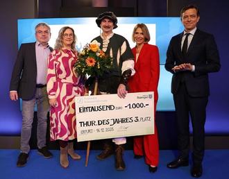 Siegerin der Jahreswertung und damit "Thüringerin des Jahres 2023" wurde Karnevals-Tanztrainerin Jean Möller aus Ziegenrück (33,8 %), gefolgt von Dorfkümmern Ivonne Frehse aus Hainspitz (16,7 %) und unserem Burgvogt. Die Auszeichnungen wurde vorgenommen durch die Thüringer Sozialministerin und Stiftungsratsvorsitzende, Frau Heike Werner, sowie dem Geschäftsführer der Thüringer Ehrenamtsstiftung, Herrn Niels Lange.