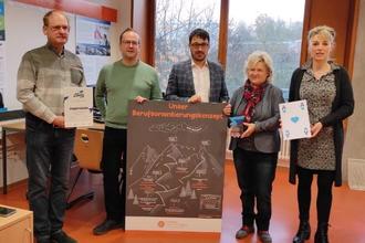 Arbeiten gemeinsam für eine zielgerichtete Berufsorientierung an der Staatlichen Regelschule: Schulleiter Matthias Eger, Gewerbevereinsvorsitzender Torsten Hoffmann, Bürgermeister Markus Böttcher, Berufsorientierungskoordinatorin Sabine König und Schulfördervereinsvorsitzende Jana Endter.