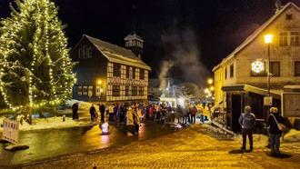 Entlang der Hauptstraße präsentierten sich zahlreiche Vereine und Geschäfte mit eigenen Ständen, verkauften Glühwein und Gebratenes oder luden zum Mitmachen ein - ob am Stand des Schützenvereins, an der mobilen Feldschmiede des Metallhandwerksmuseums, auf der Kindereisenbahn oder dem Mini-Abfahrtshang mit echtem Schnee des Skiclubs Steinbach-Hallenberg.