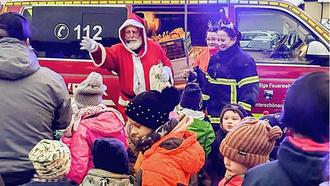 In Oberschönau reiste der Weihnachtmann im Feuerwehrauto mit Blaulicht und Martinshorn an und beschenkte die vielen Kinder, die schon sehnsüchtig auf ihn gewartet hatten.