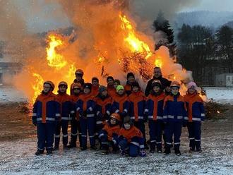 Die Steinbach-Hallenberger Jugendfeuerwehr hatte das „Chreesöpfelfüücher“ stets unter Kontrolle