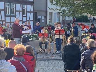 Zum 125-jährigen Bestehen begeisterte der evangelische Posaunenchor über 200 Gäste mit einer Serenade vor der Stadtkirche.