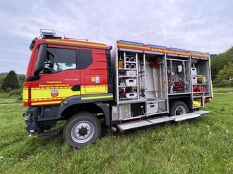 Das neue Tanklöschfahrzeug TLF 3000 der Freiwilligen Feuerwehr Steinbach-Hallenberg wird an die Leitstelle des Landratsamtes als „einsatzbereit“ gemeldet.
