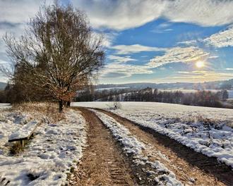 Mit einer winterlichen Aussicht von unserem Rundwanderweg „Weitblick Haseltal“ in Richtung Viernau