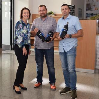 Stadtrat und Bäckermeister Daniel Marr sowie Nico Hannes vom gleichnamigen Spirituosenhandel in Viernau nahmen als Vertreter der Stadt Steinbach-Hallenberg das Präsent von Landrätin Peggy Greiser entgegen. Die E-Bike-Tour der Bäckerei Marr über 45 Kilometer war bei der diesjährigen Aktion „Stadtradeln“ eine der beliebtesten und landschaftlich schönsten Touren.