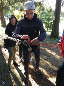In enger Zusammenarbeit mit den Mitgliedern der aktiven Einsatzgruppe der Bergwacht Rotterode stellten Jonas, Bruno, Finn und Konstantin ein Programm zusammen. Schließlich sollte es ein besonderer Tag werden. Im Sommer letzten Jahres war es dann soweit. „Am Eingang zum Moosbachtal gings los. Von dort sind wir zusammen bis zur Hütte gewandert“, erzählt Jonas Büchner. Auf den Neuhöfer Wiesen angekommen, gab es drei Stationen, an denen sich die Schülerinnen und Schüler aktiv mit verschiedenen Themen beschäftigen konnten. „Reanimation mit Defibrillator, Verbände anlegen und Flaschenzug bauen“ - es war wirklich vielseitig und interessant“, bestätigte Frau Kaufmann, betreuende Fachlehrerin der Projektgruppe stolz. Sie freute sich sehr über die gelungene Exkursion und das Engagement der Projektgruppe. Fachliche und Tatkräftige Unterstützung gab es von den Kameraden der Bergwacht Rotterode und den Mitgliedern des Fördervereins der Bergwacht. Sie freuten sich sehr über das Engagement der Projektgruppe und sorgten gerne dafür, dass es neben den fachlichen Inhalten und interessanten Mitmachstationen auch eine leckere Nudelsuppe und Tee gab.